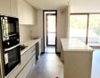 Cocina integrada y equipada con encimera a gas, microondas, campana y horno eléctrico.